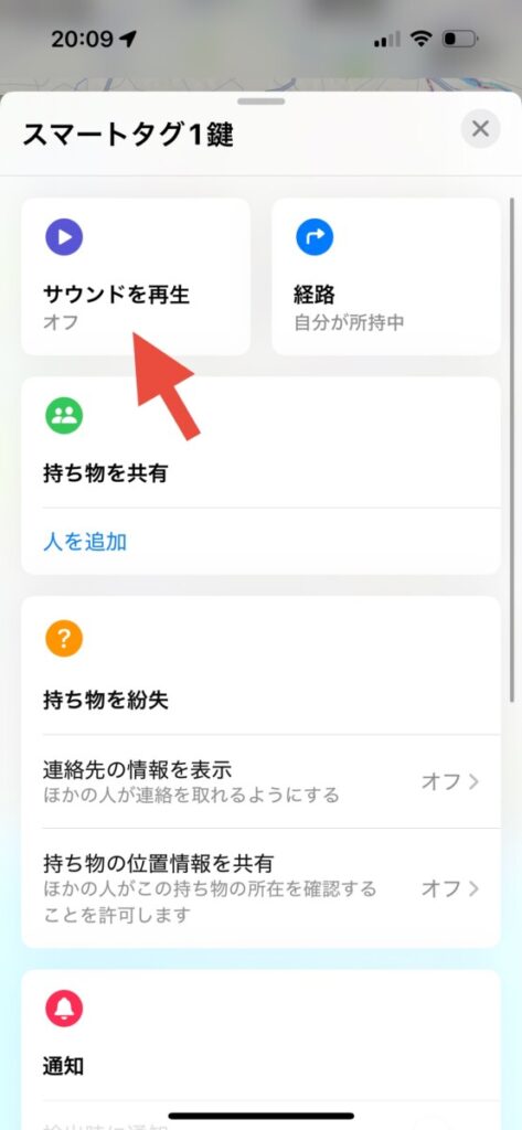 こちらの「サウンドを再生」ボタンを押すことで、【UGREEN スマートトラッカー】からサウンドが再生されるため、すぐに持ち物を見つけることができます。